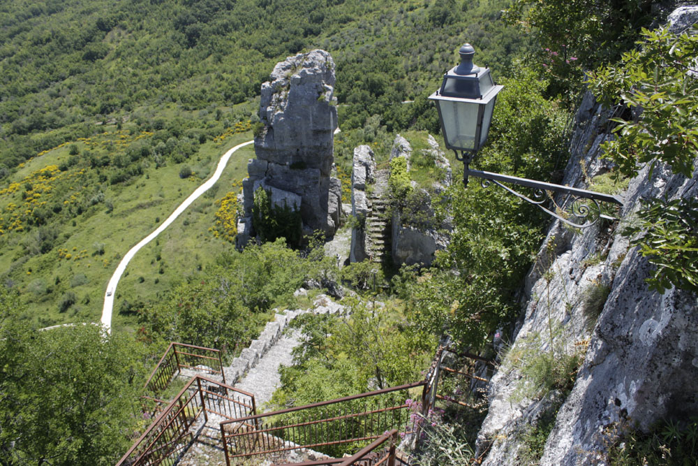 Incredibili pinnacoli e creste acute dentellate, perfettamente verticali, di calcare compatto e liscio, svettano sopra i tetti delle case di Pennadomo. Sono la gioia degli arrampicatori sportivi, che è qui facile incontrare, attaccati alle pareti come gechi. Ci si incanta a vederli salire sicuri, armonici e potenti, quasi a tu per tu con chi si incammina lungo un sentiero facilmente accessibile e attrezzato con piazzole protette da ringhiere. Per un altro sentiero che si stacca dal paese e supera un canyon, si arriva in breve ad altre imponenti lame rocciose solcate da numerose vie di salita. Potrebbe capitare che non ci sia nessuno che arrampica, ma lo spettacolo è comunque garantito dallo straordinario effetto speciale offerto dalla natura che sembra mettersi in posa per farsi fotografare.