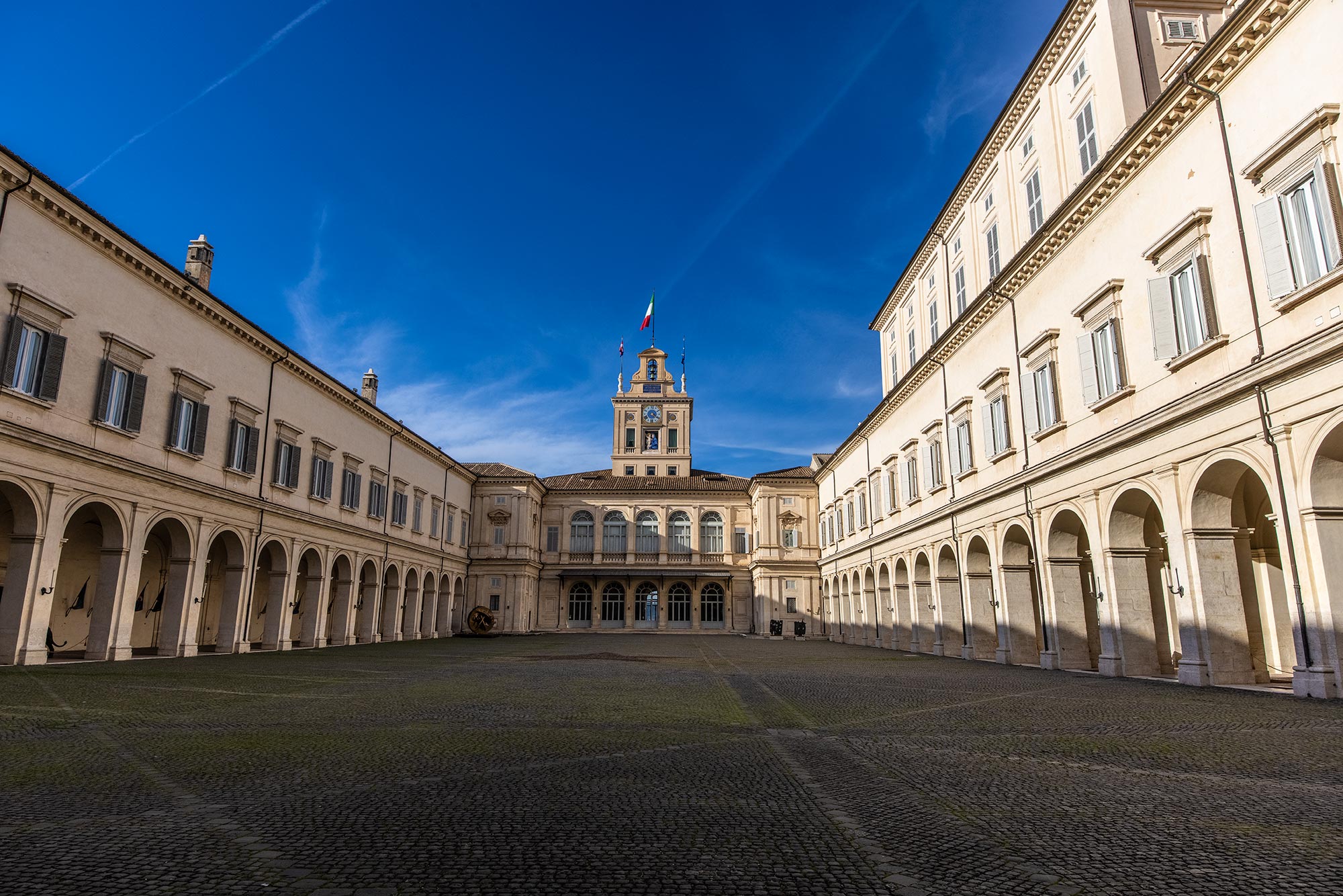 Diede avvio ai lavori l’architetto Ottavio Mascherino, cui si deve tra l’altro la scenografica loggia d’Onore, dove oggi si svolgono le consultazioni per la formazione dei nuovi governi, decorata da colonne in marmo provenienti dalla cappella Paolina, realizzata in replica alla Sistina niente di meno che da Carlo Maderno. L’ideatore della facciata di San Pietro fu all’opera anche nel portale del palazzo presidenziale, sovrastato dalla loggia delle Benedizioni del 1638, che porta il nome, per dirne un altro, di Gian Lorenzo Bernini, artefice anche della progettazione della Manica Lunga, prolungamento del prospetto sud dove, nei cosiddetti appartamenti imperiali, vengono alloggiati gli ospiti in visita di Stato. Sul torrino, sovrastante l’originario corpo di fabbrica, lo stendardo presidenziale sventola quando il presidente è a Roma, altrimenti è ammainato.