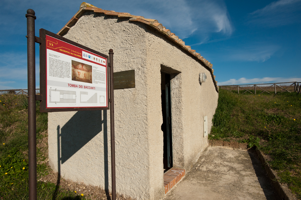 Quella dei Monterozzi, a poca distanza dalle mura e dal centro di Tarquinia, è una delle necropoli più importanti dell’Italia etrusca. Il suo nome deriva dalle forme del suo paesaggio, segnato fin dall’antichità da piccole collinette che celavano alcune delle tombe dipinte più fastose e meravigliose dell’età degli Etruschi. Lunghe indagini archeologiche hanno portato alla scoperta delle sepolture, poi al loro studio e infine al loro restauro, al termine del quale gli affreschi sono stati protetti da vetrate a tenuta stagna, per evitare che i cambi di temperatura e umidità negli ambienti ipogei possano deteriorare i vivaci colori e le linee delicate delle pitture. In molte delle sepolture affrescate, l’immagine delle donne dell’Etruria risalta appieno, a testimoniare il ruolo importante e non certo sottomesso e marginale delle grandi dame dell’antica città. Si ammirano signore affascinanti che presenziano a ricchi banchetti con ospiti di riguardo e le evoluzioni di ballerine esili e graziose che si muovono delicatamente sulle pareti di altre tombe. Molto spesso queste donne dell’alta società etrusca erano eredi di importanti stirpi di mercanti, ricche grazie ai commerci che interessavano l’Italia centrale, la Magna Grecia e il Mediterraneo. La visita alla necropoli è un’occasione eccezionale per conoscere da vicino i riti e le consuetudini della società etrusca, nella quale un ruolo fondamentale era assegnato proprio alla donna.