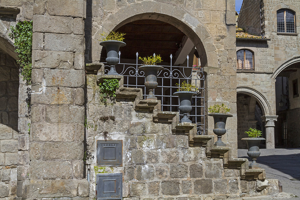 Stradine tortuose con i caratteristici profferli, passaggi coperti, case che si sorreggono con scenografici “cavalcavia” duecenteschi, e poi torri, archi, piazzette, cortili, loggiati... Passeggiare con calma nel quartiere San Pellegrino di Viterbo è come entrare in una meravigliosa macchina del tempo e fare un salto indietro di otto secoli, ritrovandosi accanto a dame e cavalieri in armatura, giullari e giocolieri, immersi in leggende e racconti. Così, mentre lo sguardo segue gradino dopo gradino l’incedere di una scala esterna verso una bifora leggera ed elegante, ecco uno slargo e la caratteristica forma a fuso della fontana del Piano Scarano, risalente, nelle forme attuali, al XIV secolo. La luce sfuma, si attraversa un portico che accompagna alla chiesa di Sant’Andrea e di vedetta, lassù, ecco la vela del suo campanile. Il cuore e l’asse del quartiere sono la piazzetta e la via dedicate a San Pellegrino, dove si trovavano gli ospitali per i viaggiatori che percorrevano la Via Francigena diretti a Roma. A pochi passi da San Pellegrino, è irrinunciabile la visita di un altro spazio urbanistico di epoca medievale, centro del potere religioso della città. È piazza San Lorenzo, con la Cattedrale e il Palazzo dei Papi, da cui si scorge la singolare chiesa di Santa Maria in Carbonara, che fu al centro di un insediamento dei Templari in città e ancora conserva un emblema con la croce del Tau, simbolo dei misteriosi cavalieri. Tra le imponenti mura del Palazzo dei Papi tra il 1268 e il 1271 nacque il Conclave, il più lungo e drammatico della Chiesa: dopo quasi due anni di riunioni infruttuose seguite alla morte di Clemente IV nel 1268, i viterbesi persero la pazienza e chiusero a chiave (“cum clave”) i porporati nella sala, scoperchiarono il tetto lasciandoli esposti alle intemperie e li nutrirono solo a pane e acqua, fino all’elezione di Gregorio X nel 1271. Ma Viterbo è anche città dalle “acque magiche”, fonti termali già note nell’antichità la cui fama è giunta sino a noi. Gli stabilimenti delle Terme dei Papi, dotati di hotel, ristoranti e piscine, sono ancora oggi assai apprezzati per le virtù delle acque e dei fanghi utilizzati a fini terapeutici quanto estetici: l’ideale per una sosta che a una notte riposante aggiunga una giornata di salubre relax prima della partenza.