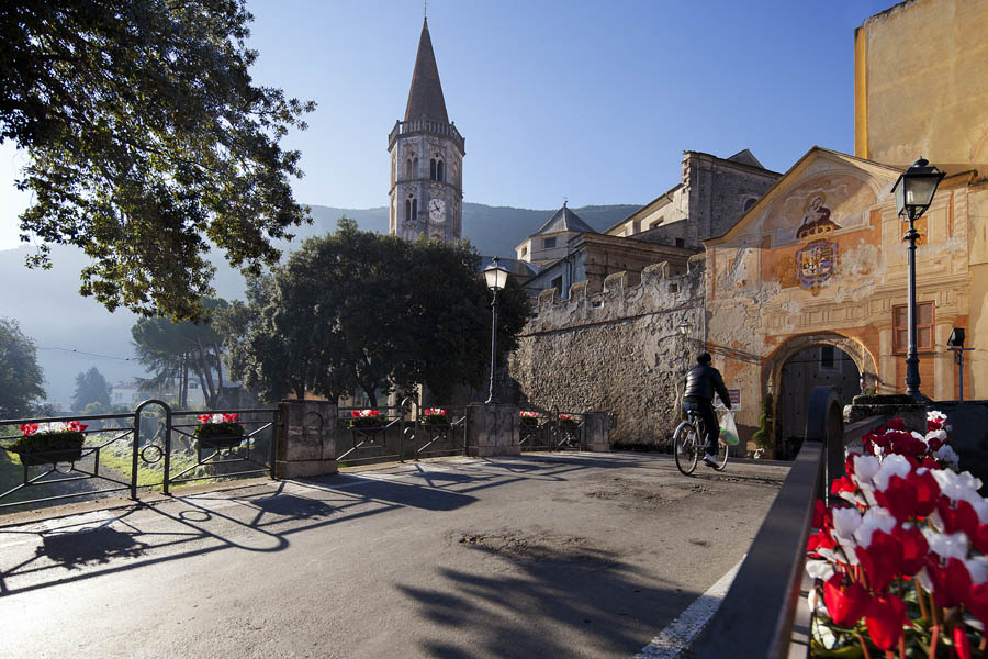Nel Savonese borghi fortificati talvolta intatti come presepi sorgono arroccati su montagne o colline affacciate sul mare: basta superare qualche tornante per lasciarsi trasportare dalla curiosità di esplorare mura, torri e castelli che presidiavano strade strategiche verso il Piemonte o la Riviera. Si scopre così che il duecentesco castello di Cairo Montenotte era su una fondamentale via di transito per il commercio tra la Liguria, Alba e Asti e un importante punto di osservazione e comunicazione con i manieri vicini. Anche il borgo di Noli, chiuso in un abbraccio entro la sua cortina di mura, conserva, oltre alle torri e al castello eretto nel X secolo sulla collina per difendere l’abitato dai pirati saraceni, le memorie dorate della Repubblica Marinara di Genova. La sua potente flotta era ancorata in un magico angolo azzurro di costa, dove bianche pareti calcaree frequentate solo dai gabbiani precipitano ripide a strapiombo sull’acqua. Nel centro murato di Finalborgo il viaggio nella storia conduce nel cuore del Medioevo, quando le vie e le piazze erano animate da dame e cavalieri, i quali si esibivano in giostre di spada e tornei a cavallo, mentre il borgo fortificato di Castelvecchio di Rocca Barbena, a 1142 m d’altezza, assomiglia a un nido d’aquila in bilico tra nuvole e pietre: il suo borgo antico è talmente ben conservato da essere stato insignito della Bandiera arancione del Touring Club Italiano. L’itinerario si conclude nel borgo fortificato di Zuccarello, dove anche le case che guardano il fiume Neva sono munite di piccole finestre con inferriate per assicurare maggior protezione.