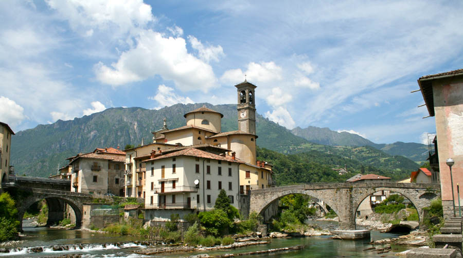 Lo spirito burlone di Arlecchino vive ancora a San Giovanni Bianco, pittoresco borgo medievale e storica tappa nei viaggi del passato verso l’Europa del Nord, crocevia di mercanti, ma anche di giullari e cantastorie. Non è un caso che proprio qui sia nata una delle maschere più simpatiche della Commedia dell’Arte, Arlecchino. La campagna, le strade e le case richiamano i paesaggi del Seicento e le ambientazioni in cui il servitore di una potente famiglia di mercanti riuscì a immaginare e a dare forma alla figura del servo buffone. Nel palazzotto dei Grataroli di Oneta, appena sopra l’abitato, oggi come allora, si respira l’essenza della Commedia dell’Arte tra costumi e cimeli e all’ingresso della casa museo compare una riproduzione dello straordinario affresco risalente alla tradizione dell’Homo Selvadego diffusa nelle comunità retico-alpine e originale matrice della maschera di Arlecchino.