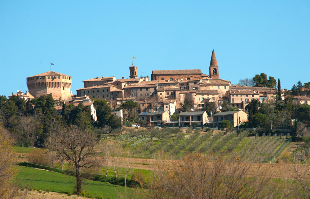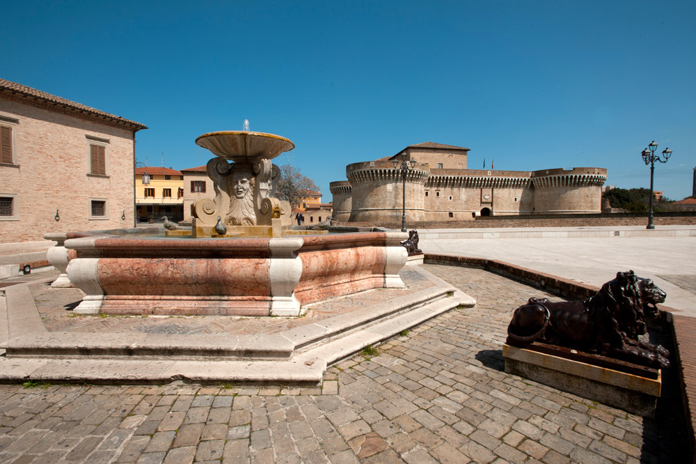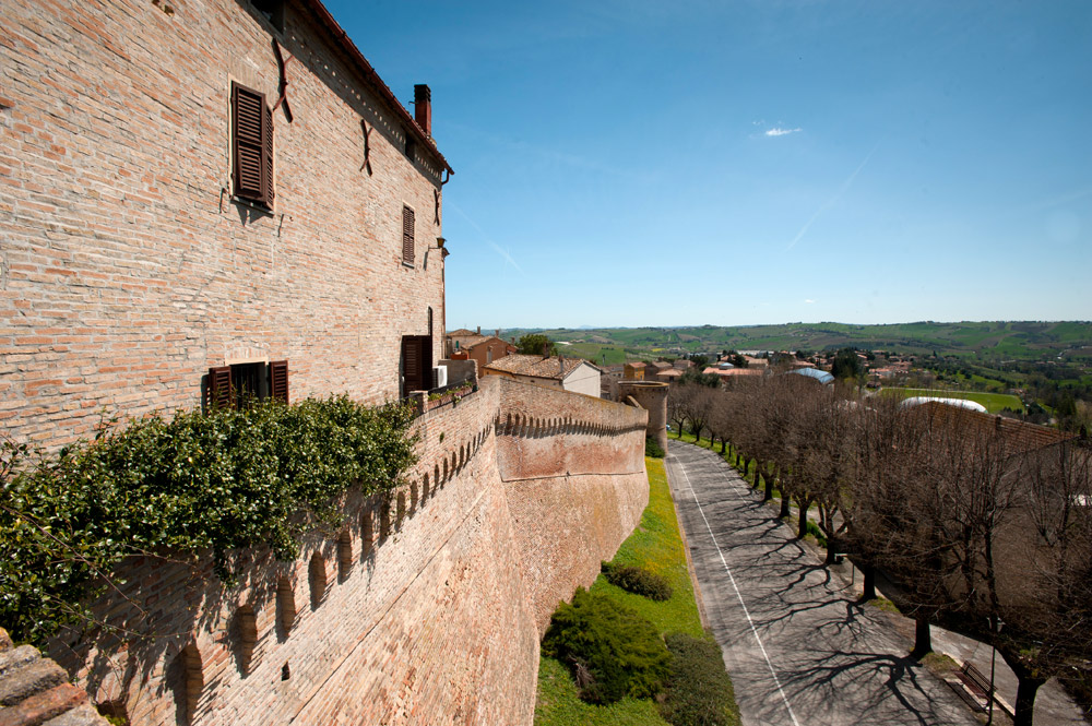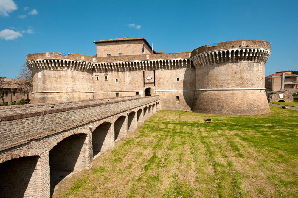Fortezze imponenti, costruite nel corso del Rinascimento per controllare porti e valli, vie di comunicazione e mercati. A Senigallia, le rocche di mattoni costruite nel Quattrocento sono uno dei segni distintivi del paesaggio, e la loro presenza rende unico un territorio di grande valore paesaggistico e storico. La città, nata sul mare e sul porto-canale del Misa, era difesa dalla mole squadrata della Rocca Roveresca, frutto del progetto dell’architetto Baccio Pontelli. Dall’alto dei camminamenti della fortezza si gode di un bel panorama sulla cittadina e sulla piazza voluta dai Della Rovere, con al centro una bella fontana decorata da leoni. Anche percorrendo le colline dell’entroterra senigalliese e marchigiano, le grandi strutture militari rimangono una caratteristica importante: a Ostra la svettante Torre Civica, anche se ricostruita dopo le distruzioni della Seconda Guerra Mondiale, è un ricordo del passato. Splendida – e affacciata sul dolce declinare delle colline marchigiane – la passeggiata lungo le mura di Corinaldo permette di toccare con mano una struttura difensiva che si è conservata quasi completamente, frutto di uno dei più grandi architetti militari del Quattrocento: Francesco di Giorgio Martini. Lungo la via verso Mondavio e la sua Rocca, due soste interessanti nella Valle del Cesano ricordano il lungo passato storico e artistico di questa zona: a Suasa l’anfiteatro romano rievoca una importante città distrutta dai Goti di Alarico, mentre a San Lorenzo in Campo si trova una splendida Basilica, unico resto di una grande Abbazia benedettina. Ma ora è il momento di salire verso la prossima tappa della via delle rocche: Mondavio, vista da lontano, rivela immediatamente la sua struttura militare, che svetta tra le case del centro storico. Lungo un ponte sul fossato si raggiunge l’imponente mastio a forma di decagono della Rocca dalla suggestiva forma di una balestra, e nel fossato fa bella mostra di sé una serie di macchine da assedio ricostruite sui disegni del senese Francesco di Giorgio Martini, che progettò la fortezza. Dall’alto della torre, il paese sembra minuscolo, ai piedi del suo castello. E cela, nella ex Chiesa dedicata a San Filippo Neri, una sorpresa. Il piccolo e splendidamente decorato Teatro Apollo, ancora in funzione dopo riusciti restauri ottocenteschi che, come accade in tutte le Marche, testimonia il grande amore di città e paesi per la musica. Lungo la via verso l’Adriatico, l’ultima tappa è Mondolfo, rocca posta a guardia della vicina costa e della foce del Cesano, usata in passato come residenza estiva dei duchi, che conserva nel centro storico un lungo tratto delle antiche mura, da cui si gode di un ampio panorama verso il mare.