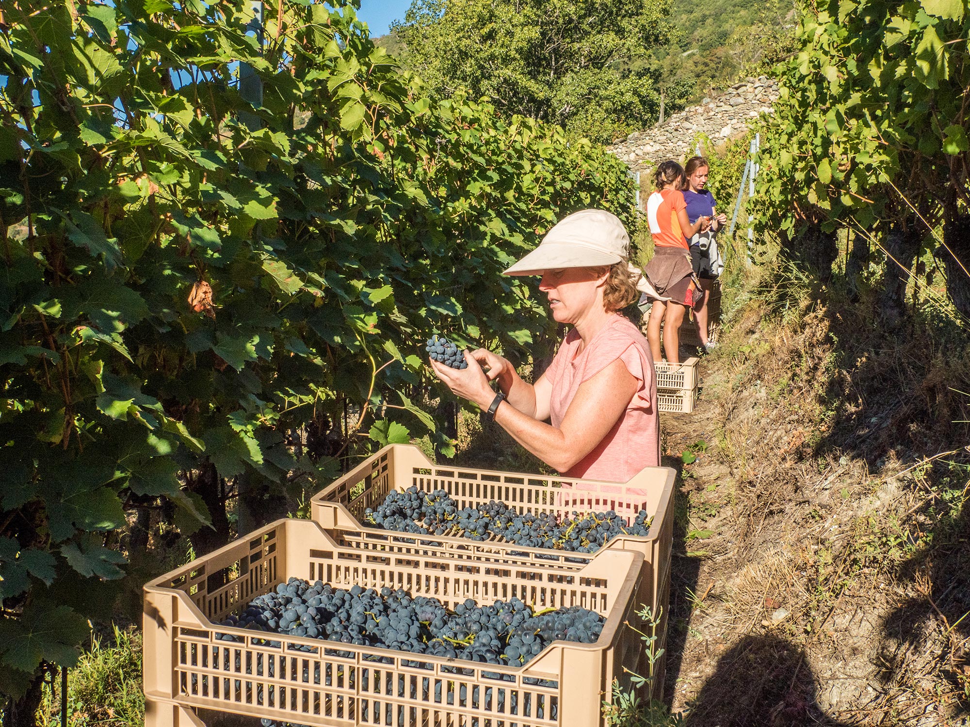 Qualcuno più famoso, qualcuno misconosciuto ai più, sono davvero tanti i vitigni autoctoni della Valle d’Aosta. Il percorso comincia facendo la conoscenza con il Petit Arvine, un’uva a bacca bianca chiamata “vite dei ghiacciai” per la capacità di crescere a dispetto dei climi più freddi. Da questa viticoltura “eroica”, ad Aymavilles, Les Crêtes, una delle realtà vitivinicole private più importanti della regione, ricava un bianco fermo dai sentori floreali e fruttati, fresco e sapido in bocca, e uno spumante Metodo Classico croccante, fragrante, slanciato. Ci si sposta poco fuori Aosta per assaggiare due importanti rossi prodotti da Elio Ottin. Il Torrette è il vino più diffuso della Valle d’Aosta e si ottiene principalmente da uve Petit Rouge, che si coltivano qui fin dai tempi degli antichi Romani. Quello di Ottin è elegante: al naso il frutto croccante e un ricordo speziato sono netti e delicati; l’assaggio è teso e sapido, senza cedere alla potenza. Di più recente scoperta (si parla dei primi dell’Ottocento) è invece il Fumin, vitigno forse tra i più noti della regione: se ne ottiene un vino robusto, terroso, espressivo. Ci si sposta dunque a Verrayes per un altro grande classico tra i bianchi valdostani: lo Chambave Muscat, ricavato da uva Moscato bianco e presente nelle versioni secca e flétri (passita). La Vrille, azienda da sempre attenta al rispetto della natura e che limita molto gli interventi in vigna come in cantina, li propone entrambi. Il primo è lungo, sapido, con note di erbe aromatiche; più complesso il Flétri, avvolgente e suadente al naso con frutta candita e fiori appassiti, e un sorso equilibrato e profondo con ricordi di miele e un contrasto dolce-salato di grande fascino. Il percorso si chiude a Nus, in una delle zone più significative per la Malvoisie, ottenuta con uve di Pinot Grigio: quella dell’azienda Les Granges è affascinante e caleidoscopica, ricca e sapida, lunga e fresca. Altro vitigno della zona, presente qui dalla fine del XVIII secolo, e che vive una giusta riscoperta da qualche decennio dopo un periodo di oblio, è il Cornalin: se ne ottiene un rosso che al naso ricorda il sottobosco e i fiori appassiti, mentre in bocca è luminoso e leggiadro, vibrante e scorrevole, con una finezza che sorprende.