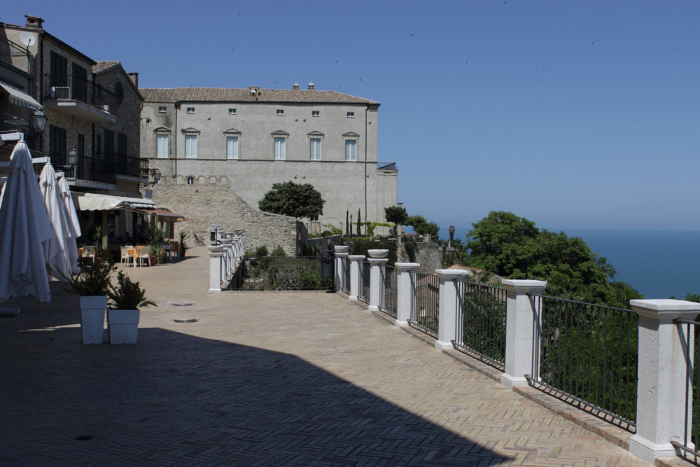 Due antiche città, entrambe fondate da popoli sannitici e cresciute in epoca romana: la prima sulla costa, Histonium, è l’odierna Vasto, l’altra, Iuvanum, si trova in montagna nelle vicinanze di Montenerodomo. Per passeggiare nella storia si comincia da Vasto, dal belvedere della Villa Comunale da cui si scende alla Loggia Amblingh, una bella passeggiata affacciata su orti, ulivi e agrumeti a picco sul golfo. Subito dopo si passa accanto a due grandi cisterne romane, oggi sale di un ristorante le cui ampie vetrate permettono di vedere ancora la poderosa struttura originale. Proseguendo lungo la cortina di case-mura che guardano il mare, si arriva all’alta cinta muraria del giardino napoletano del Palazzo d’Avalos, sede dei Musei Civici, di cui fa parte il Museo archeologico, che documenta la fioritura di Histonium, la città che i romani svilupparono dopo averla conquistata ai sanniti frentani. Tra i primi reperti si ammira l’imponente sarcofago di Publius Paquius Scaeva, che fu proconsole di Cipro, e della moglie. Di nuovo all’aperto, si riprende a godere della vista del golfo, su cui affaccia lo scenografico portale di San Pietro, isolato residuo dell’antica chiesa crollata nell’imponente frana del 1956, in cui si notano elementi appartenuti a un tempio dedicato a Cerere. A poca distanza si entra anche nelle terme romane, disposte su terrazze digradanti vista mare. E sembra che il mare abbia invaso gli ambienti lasciando sul pavimento, composto da minute tessere nere, bianche, avorio e grigie, grandi immagini di pesci e fantastiche creature dominate da un possente Nettuno. Conclusa la passeggiata archeologica di Histonium, ci si dirige all’interno, nei pressi di Montenerodomo, per visitare il Parco archeologico di Iuvanum, municipium romano posto su un altopiano a 972 m di quota, che regala vasti orizzonti e un’emozionante vista della Majella. Della città romana si possono percorrere le strade e la piazza del Foro, e immaginare gli intrattenimenti nel piccolo teatro, ancora in uso, accanto alle terme.