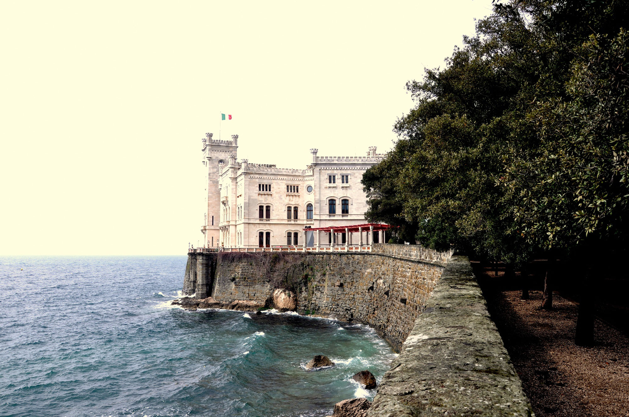 In treno, scendendo alla stazione di Miramare e proseguendo a piedi attraverso il Parco del Castello.